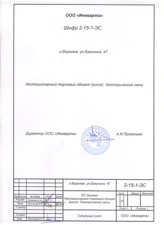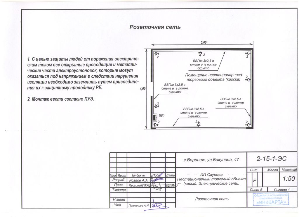 Проектирование электрических сетей киоска, 2015 г.