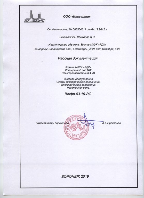 Электромонтажные работы в Воронеже. Проектирование электрических сетей ДК в г.Семилуки.